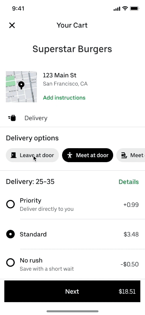 Eaters can now choose ‘Leave at Door’ as their delivery option when adding a new address or at checkout. They can also provide additional instructions to help couriers locate their door for a seamless contactless drop-off.